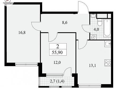 Планировка двухкомнатной квартиры 55,9