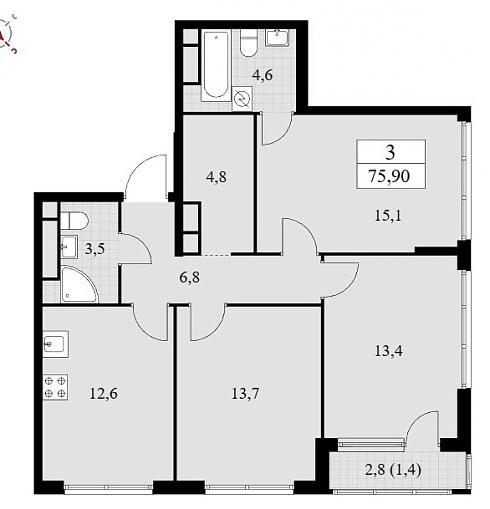 Планировка трехкомнатной квартиры 75,9