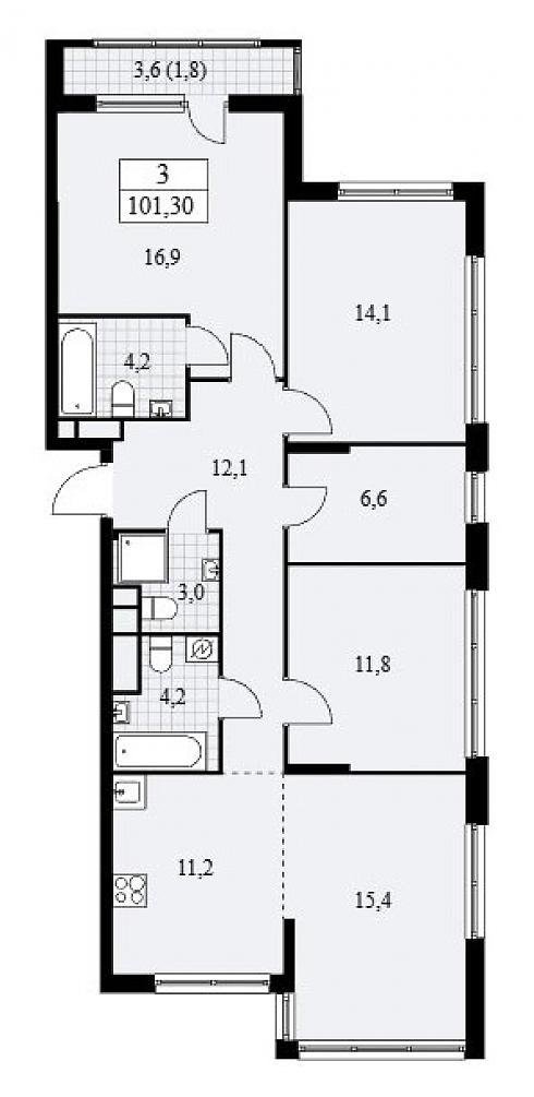 Планировка трехкомнатной квартиры 101,9