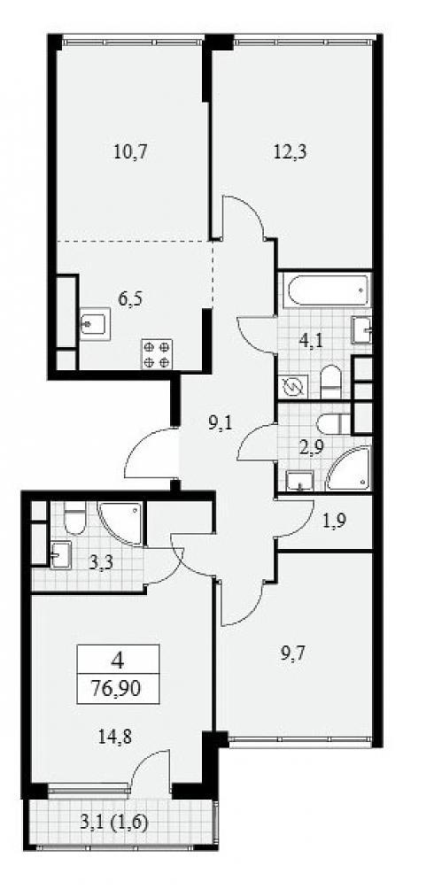 Планировка четырехкомнатной квартиры 76,9
