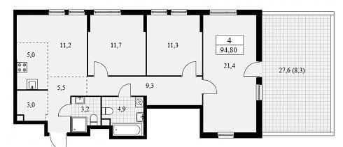 Планировка четырехкомнатной квартиры 94,8