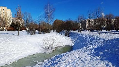 А чуть подальше зеленые зоны ландшафтного парк в Южном Бутове.