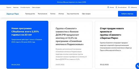 В структуру сайта вложен удобный механизм поиска квартир по параметрам, подробно описан процесс получения ипотечного кредита и другие условия покупки.