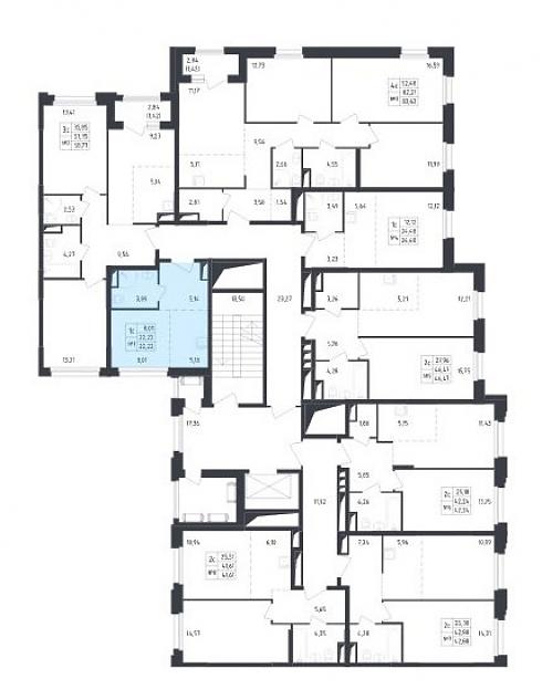 Площадь квартир от 22,2 до 83,6 кв.м, среди планировок встречаются как обычные, так и евроформат.