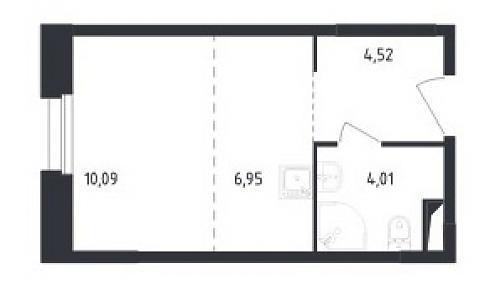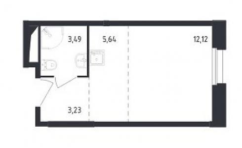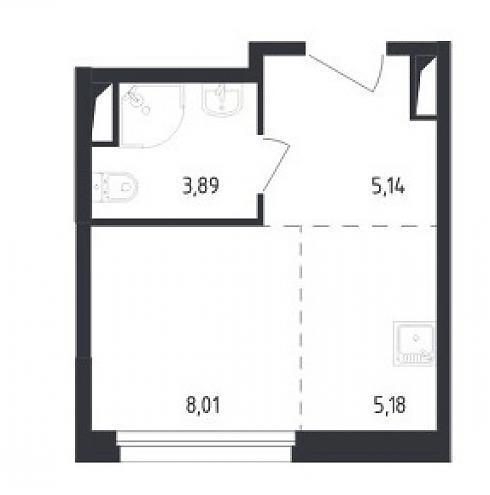 Планировки студий не содержат никаких сюрпризов. Входная зона площадью от 3,23 до 5,14 кв.м., совмещенный санузел с душевой кабиной или ванной площадью от 3,49 до 4,01 кв.м. и универсальное помещение площадью от 13,2 до 19,76 кв.м. Как говорится, маленькая, зато своя.