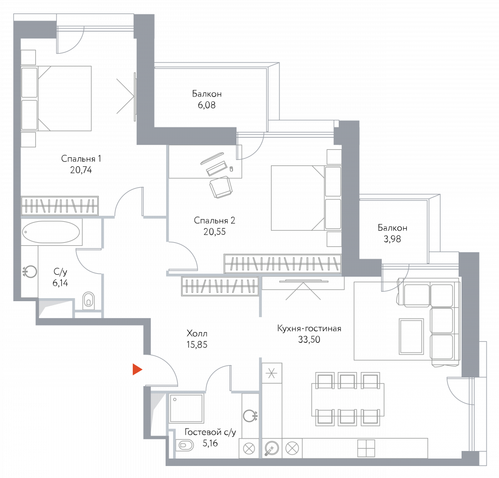 | Июнь 2023 | 57,7-79,7 м2 | 26 186 161 - 41 535 814 ₽ | ~497 956 ₽ | 5.92% |