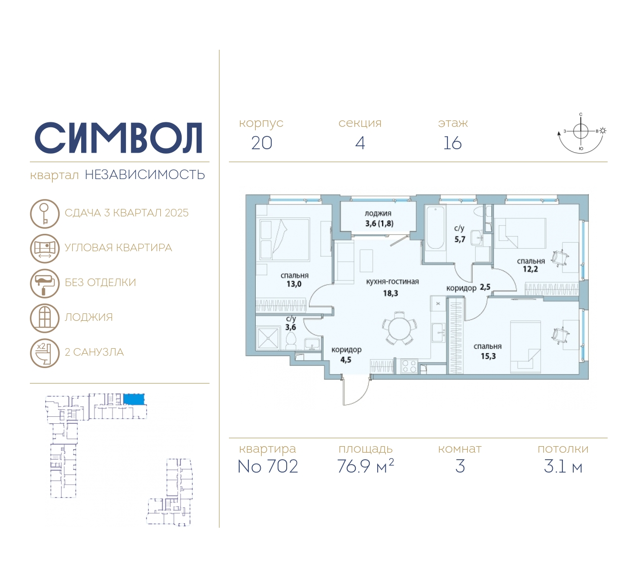 | Август 2020 | 89,3-119,5 м2 | 19 899 250 - 33 402 078 ₽ | ~256 256 ₽ | 8.19% |