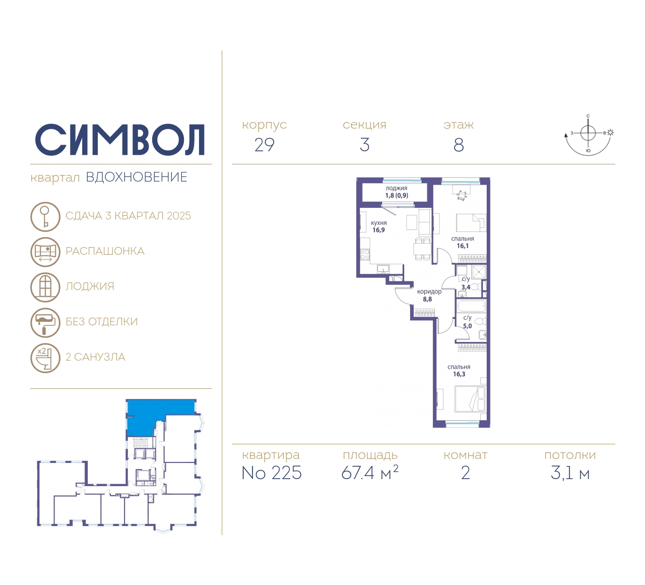 | Март 2018 | 28-34 м2 | 6 574 700 - 10 571 000 ₽ | ~276 544 ₽ | |