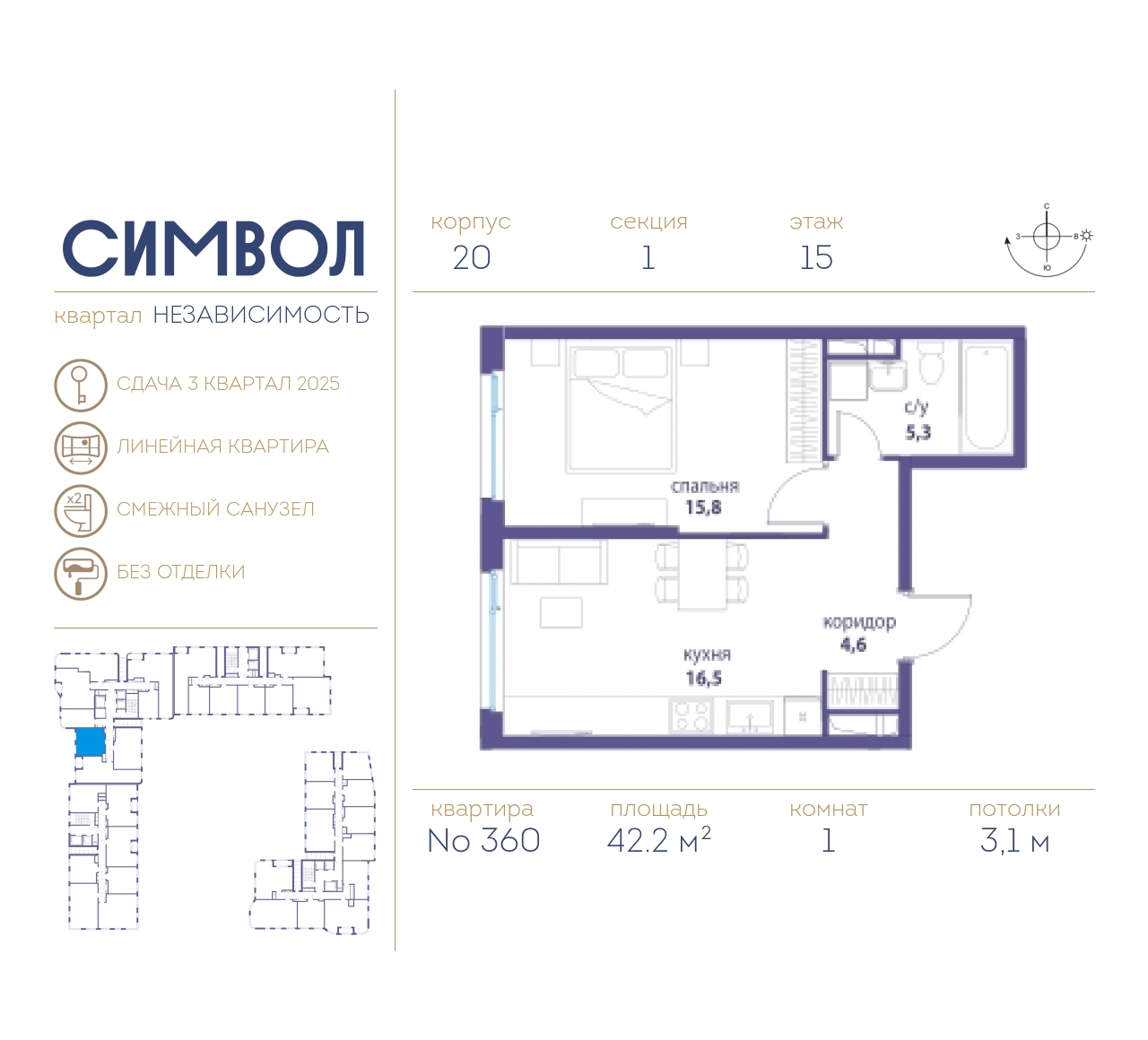 | Декабрь 2022 | 24,8-41,7 м2 | 9 542 760 - 16 465 600 ₽ | ~400 129 ₽ | 0.19% |