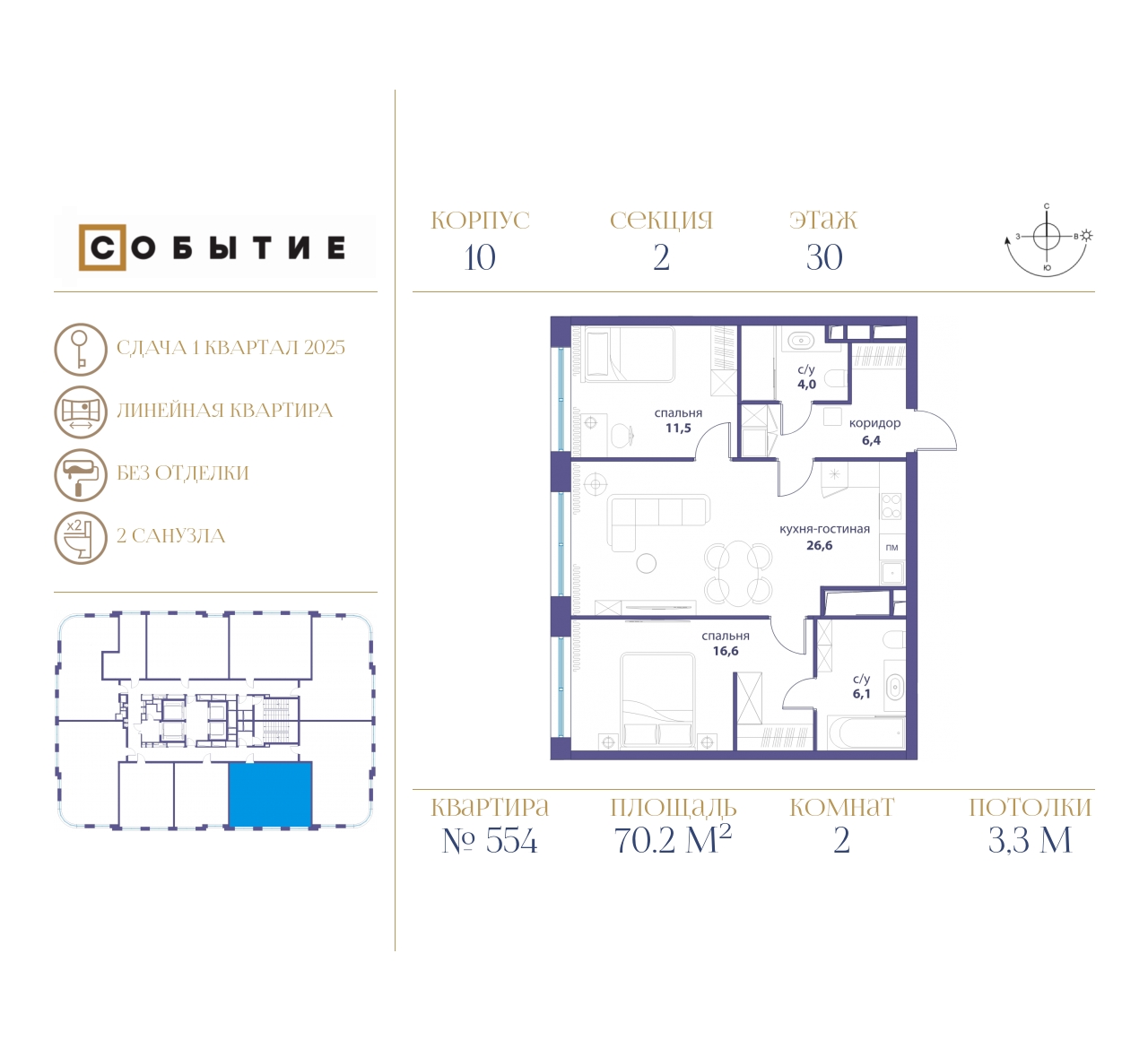 Февраль 2022 82,3-109,8 м2 29 168 090 - 51 597 780  ₽ ~422 858  ₽  10.35%