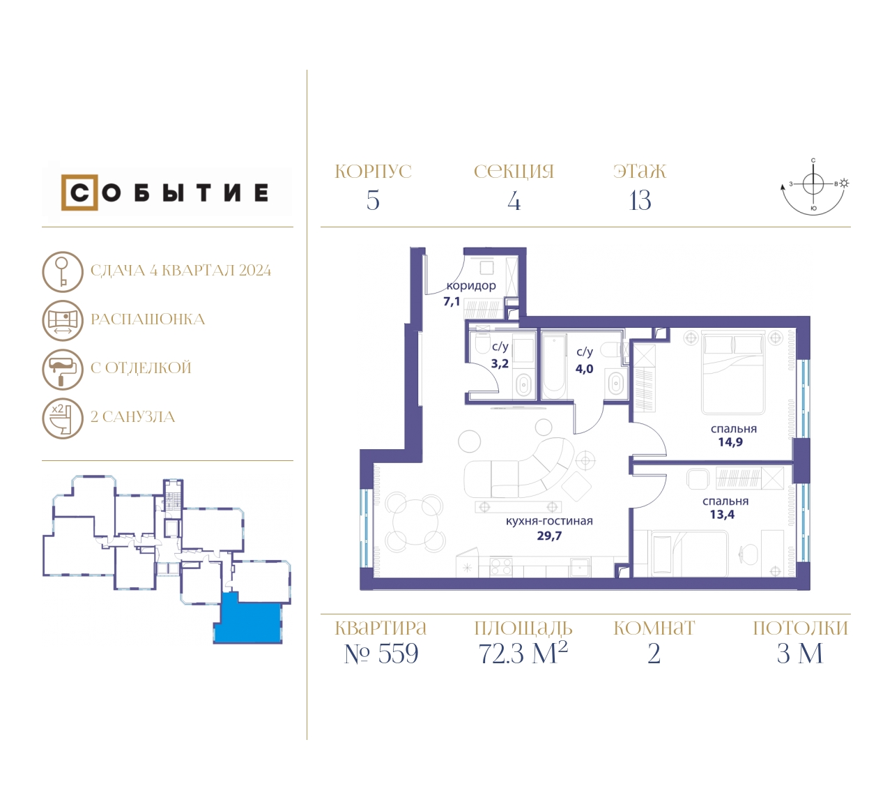 Всего корпусов. Построено 4. В работе 4 корпуса: 2024, 2025.