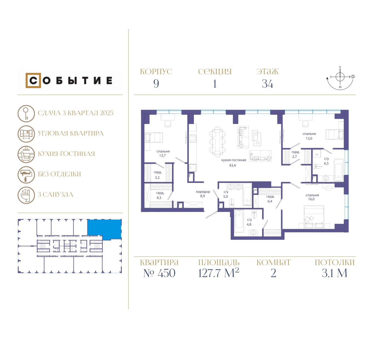 Март 2024 106.8-164,8 м2 25 084 116 - 94 370 000  ₽ ~441 116  ₽  2.25%