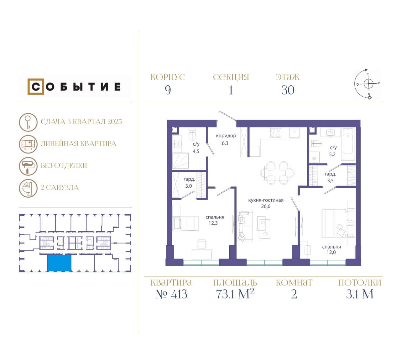 Февраль 2022 82,3-109,8 м2 29 168 090 - 51 597 780  ₽ ~422 858  ₽  10.35%