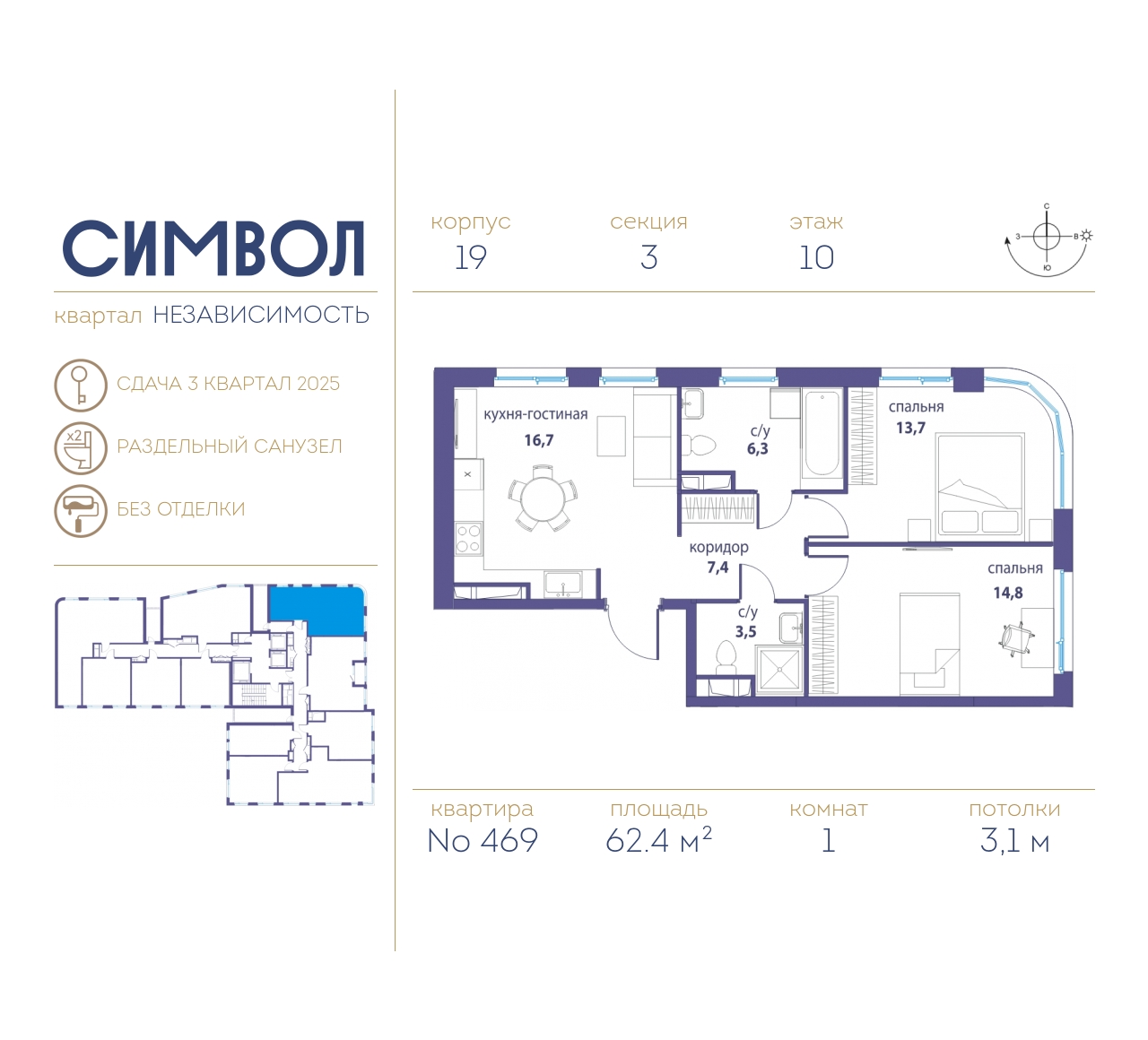 Татьяна Лиханова: Разница в цене небольшая. Квартиры без отделки, в черновом варианте стартуют от 7 млн рублей. Квартиры с предчистовой отделкой White Box: выполнены стены, коммуникации разведены. Стоимость таких квартир стартует от 7,3 млн рублей. Когда мы говорим о финишной отделке, то там бюджет повыше, уже за 7,5 млн рублей. В среднем это 7,7 – 7,8 млн рублей. Тем не менее, это очень доступный ценовой диапазон. Клиент может взять ипотеку, уже вложив в ипотеку стоимость ремонта, и оставшись потом без дополнительных затрат. Это очень удобно.