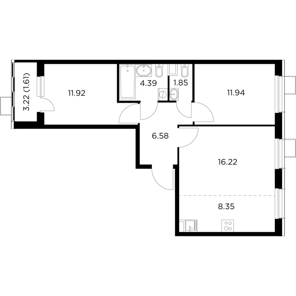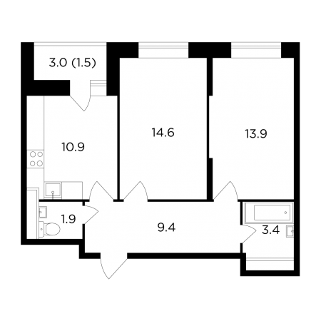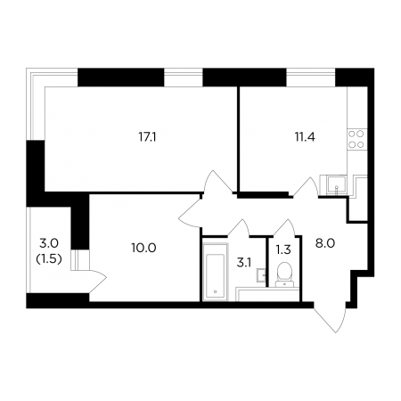| Март 2022 | 31.6-34.25 м2 | 4 400 000 - 4 973 244 ₽ | ~142 342 ₽ | 32.51% |