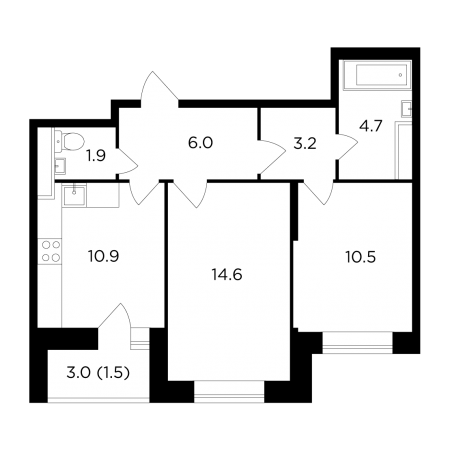 | Февраль 2022 | 36,5-61,5 м2 | 4 063 624 - 6 356 306 ₽ | ~107 422 ₽ | -38.54% |