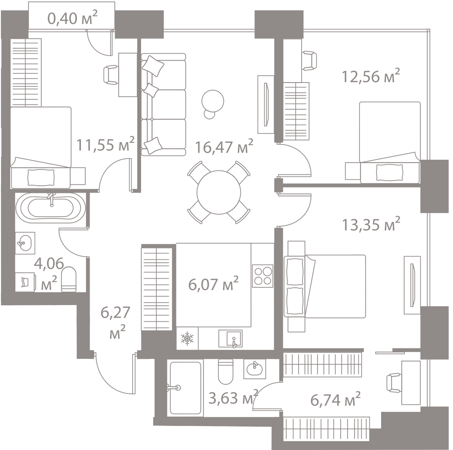 | Сентябрь 2019 | 83,33-92,16 м2 | 14 680 996 - 16 501 991 ₽ | ~178 189 ₽ | |
