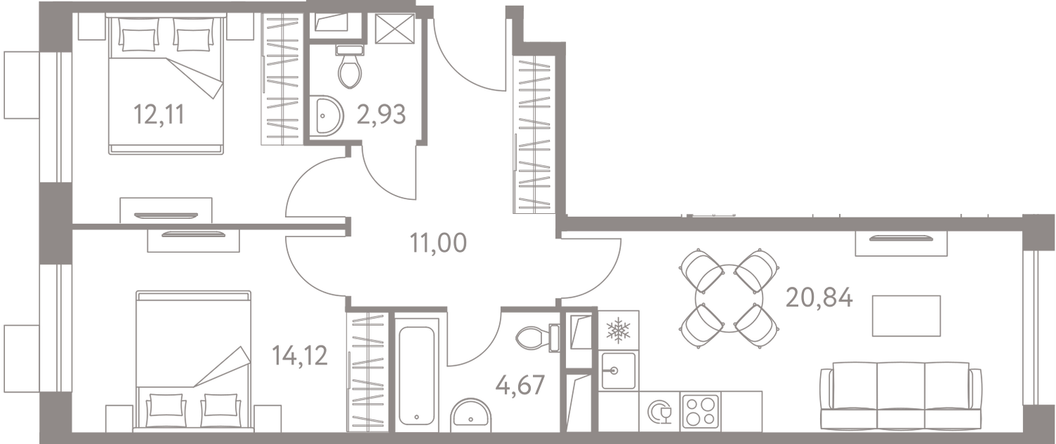 | Июнь 2020 | 58,97-104,45 м2 | 10 901 038 - 20 604 869 ₽ | ~194 481 ₽ | 6.97% |