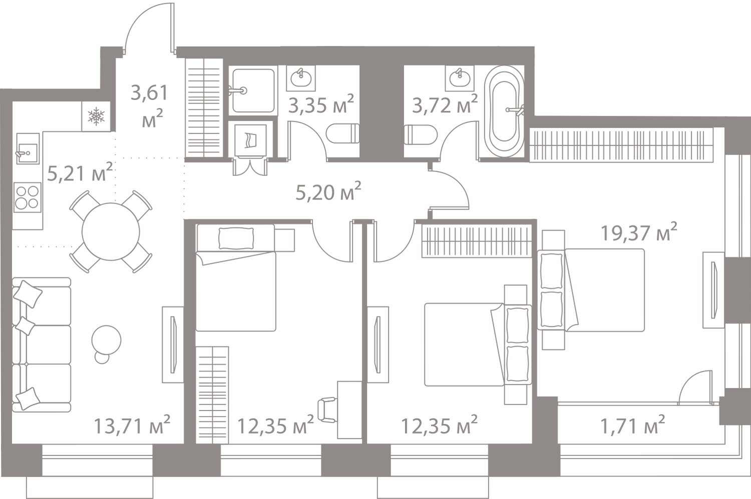 | Июль 2023 | 60,12-77,3 м2 | 21 447 456 - 29 474 651 ₽ | ~371 694 ₽ | 9.72% |