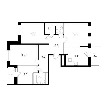 | Апрель 2019 | 93,1-102,7 м2 | 7 103 809 - 7 743 580 ₽ | ~76 140 ₽ | |
