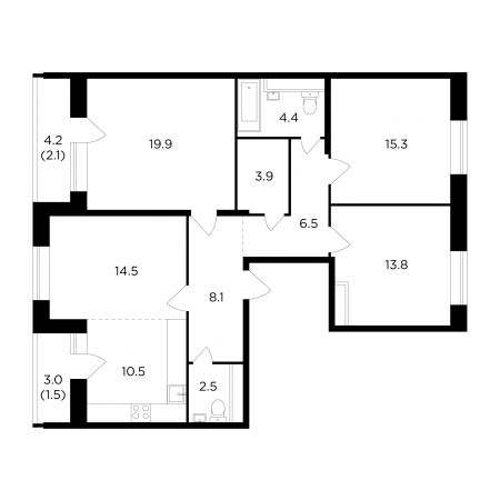 4-комнатные Квартиры 83.93-83.93 м2