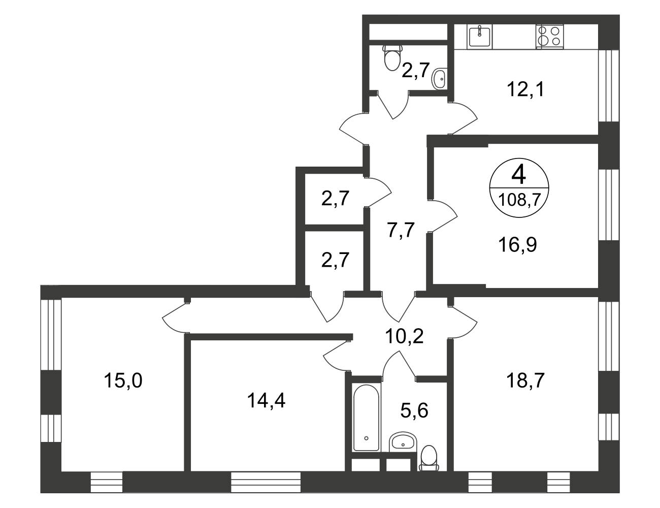 | Июль 2019 | 108,7-108,7 м2 | 10 746 905 - 11 257 170 ₽ | ~101 871 ₽ | 12.35% |