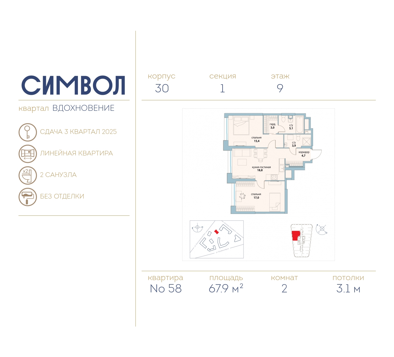 | Март 2023 | 33,5-56,6 м2 | 14 296 626 - 24 104 500 ₽ | ~431 473 ₽ | |
