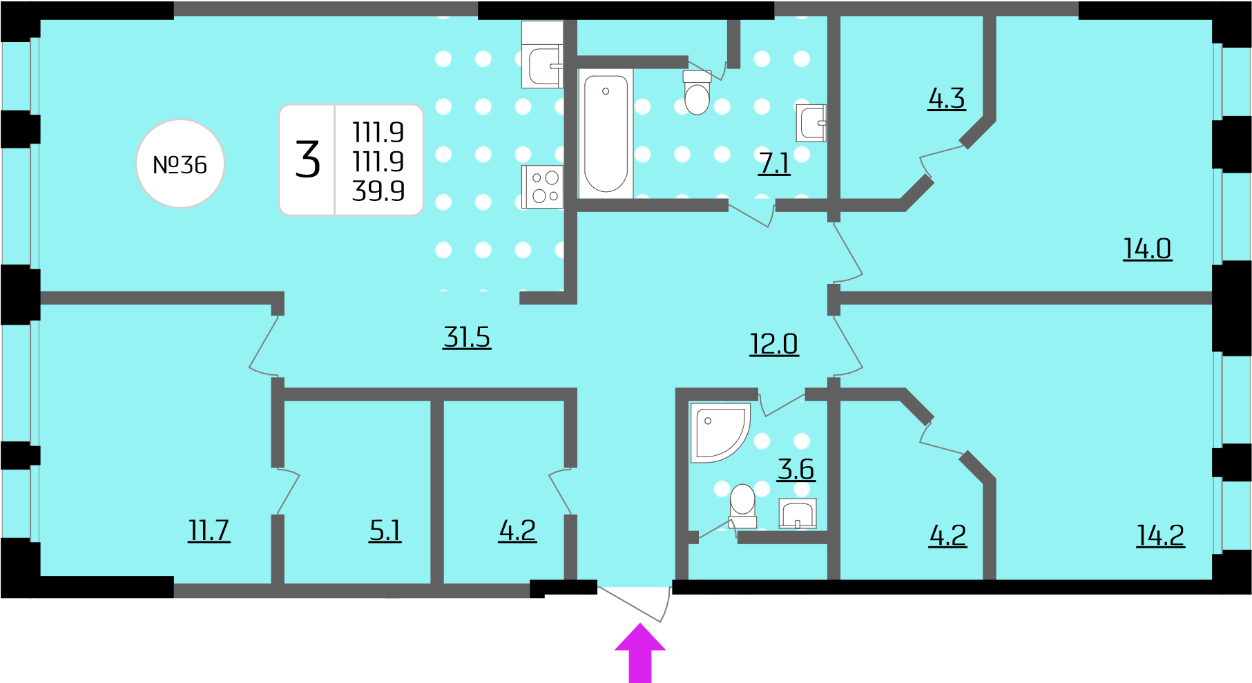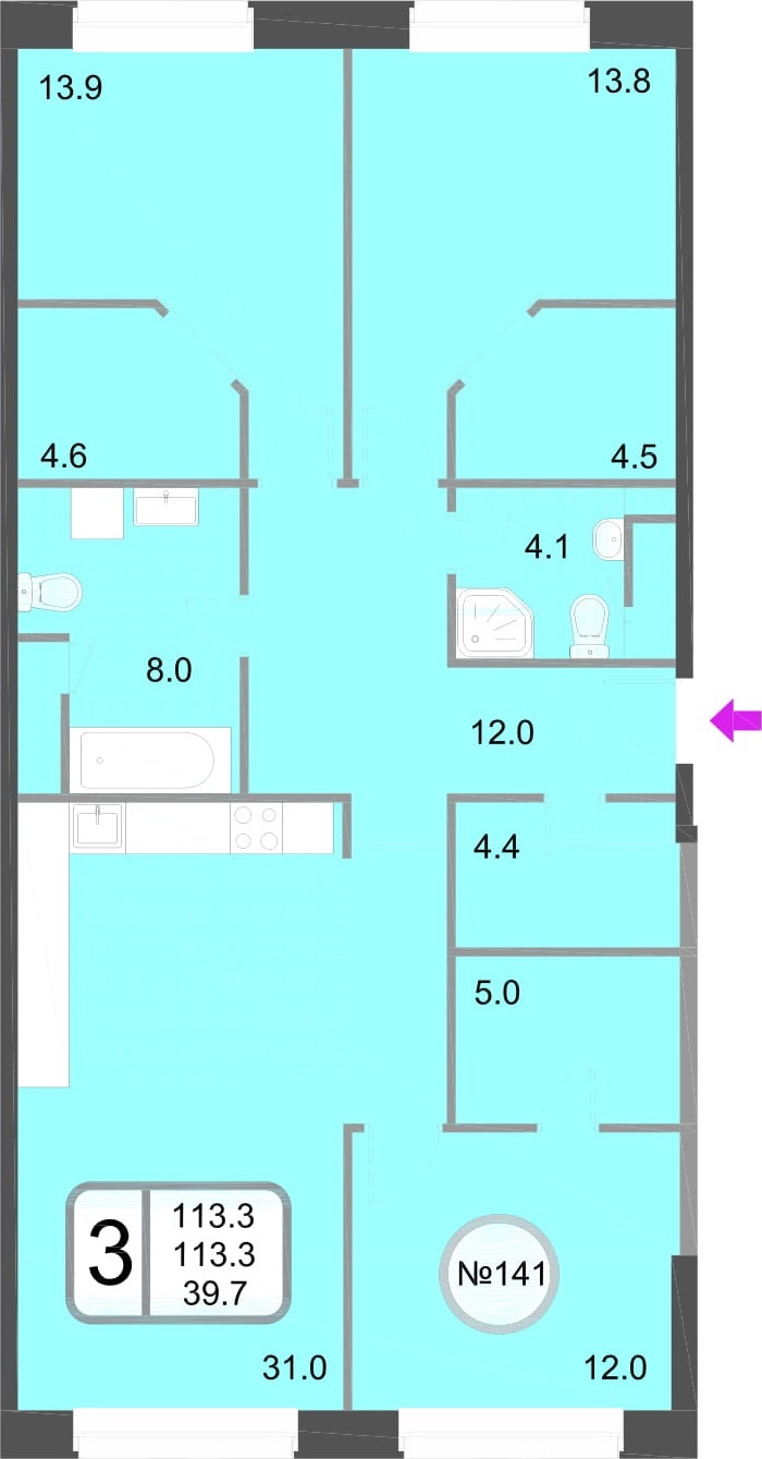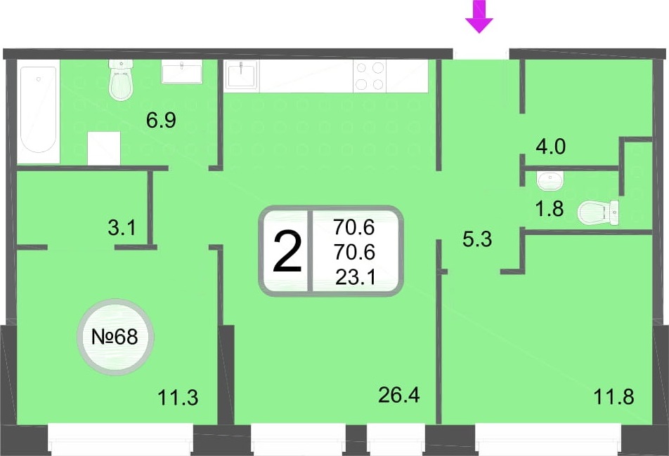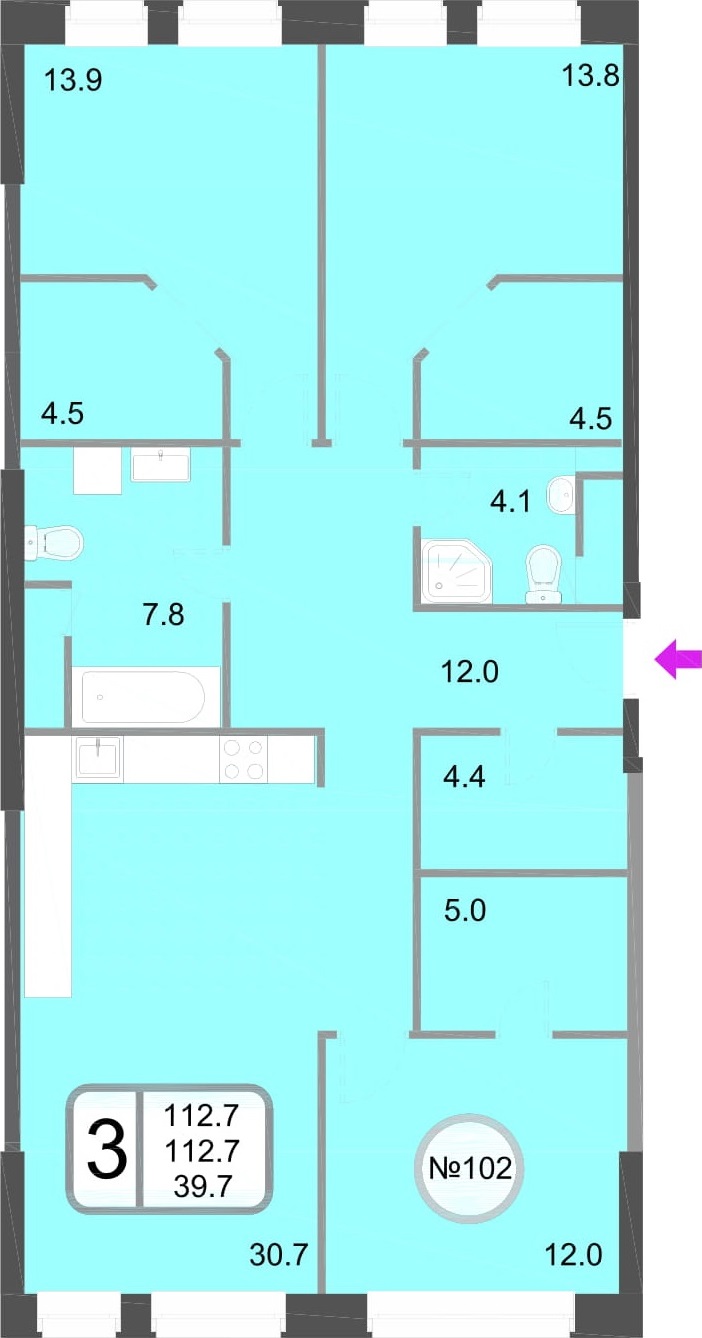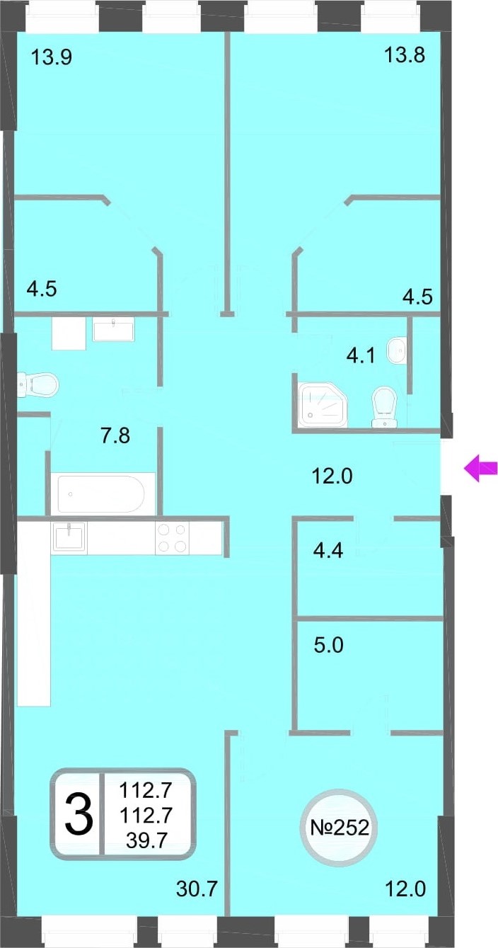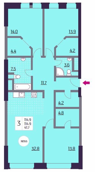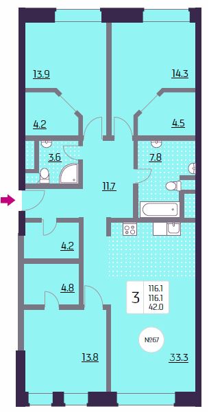 Трёхкомнатные – от 64 до 118 кв. м.