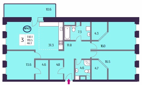 Размеры и планировки многих квартир уверенно вписываются в рамки бизнес-класса, а некоторые – протискиваются с трудом. Например, как этой 64-метровой трёшке. Отсутствует балкон и гардеробная, всего один совмещённый санузел. Не самая практичная, конечно, но по соотношению жилых метров к цене – будет очень привлекательна. Да и межкомнатные стены вас возводить никто не заставит. Поэтому однушка бизнес-класса из неё выйдет шикарная. Для сравнения покажу трёшку, с почти в два раза, превышающим метражом. Четыре гардеробные, два санузла, большая кухня-столовая, присутствует балкон. Есть зеркальные планировки этой квартиры. Вот можем наблюдать – они идут без балкона.
