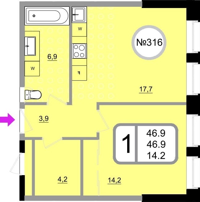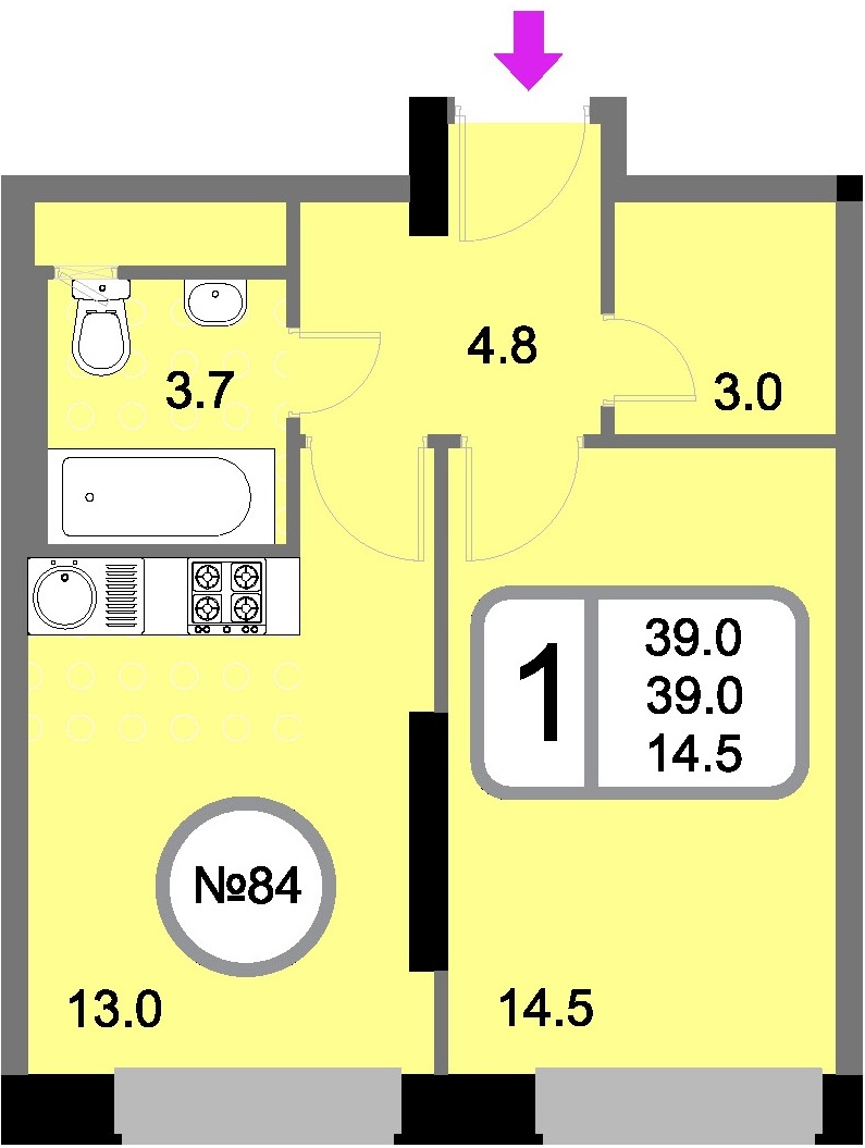 Однокомнатные – от 37 до 48 кв. м.