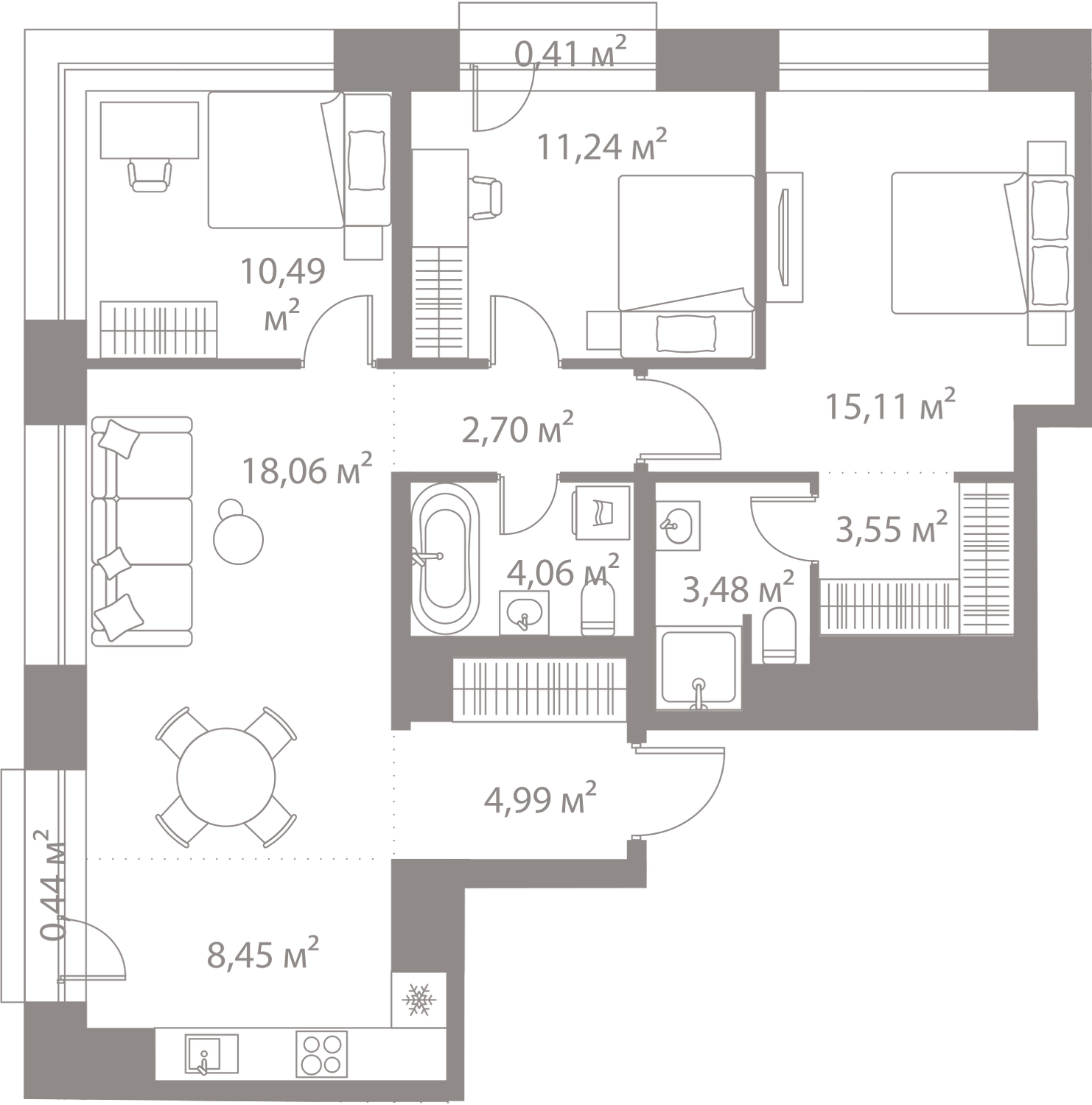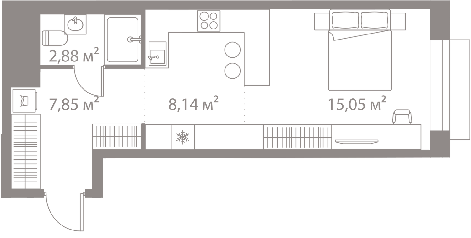 В октябре 2018 в продаже представлены квартиры в четырех корпусах первой очереди № 1, 3, 4 и 5. Это однокомнатные предложения площадью от 42 до 46,65 квадратных метров, двухкомнатные от 62,5 до 68,24 метра и трехкомнатные от 82,15 до 88,92 квадратов. Высота потолков в квартирах 2 метра 85 сантиметров. На подземных этажах запроектированы кладовые помещения площадью до 7 квадратов, которые также можно будет приобрести в собственность.